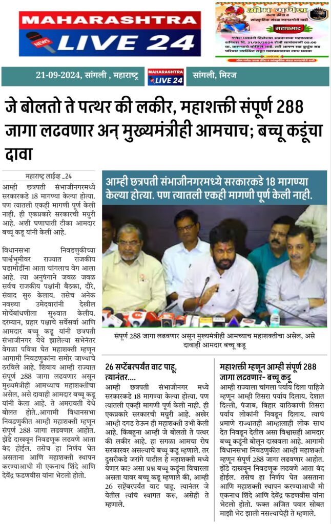 जे बोलतो ते पत्थर की लकीर, महाशक्ती संपूर्ण 288 जागा लढवणार अन् मुख्यमंत्रीही आमचाच; बच्चू कडूंचा दावा