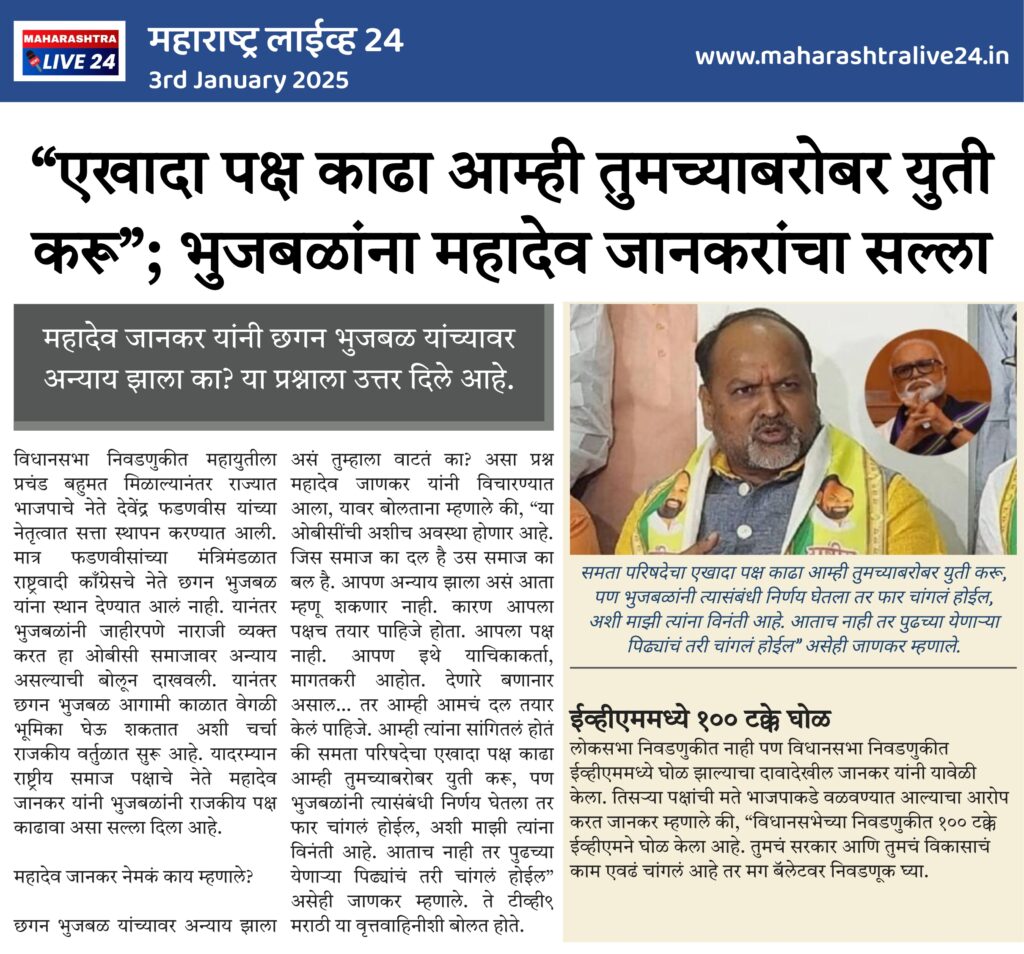 “महाराष्ट्र लाइव 24” में आपका स्वागत है!